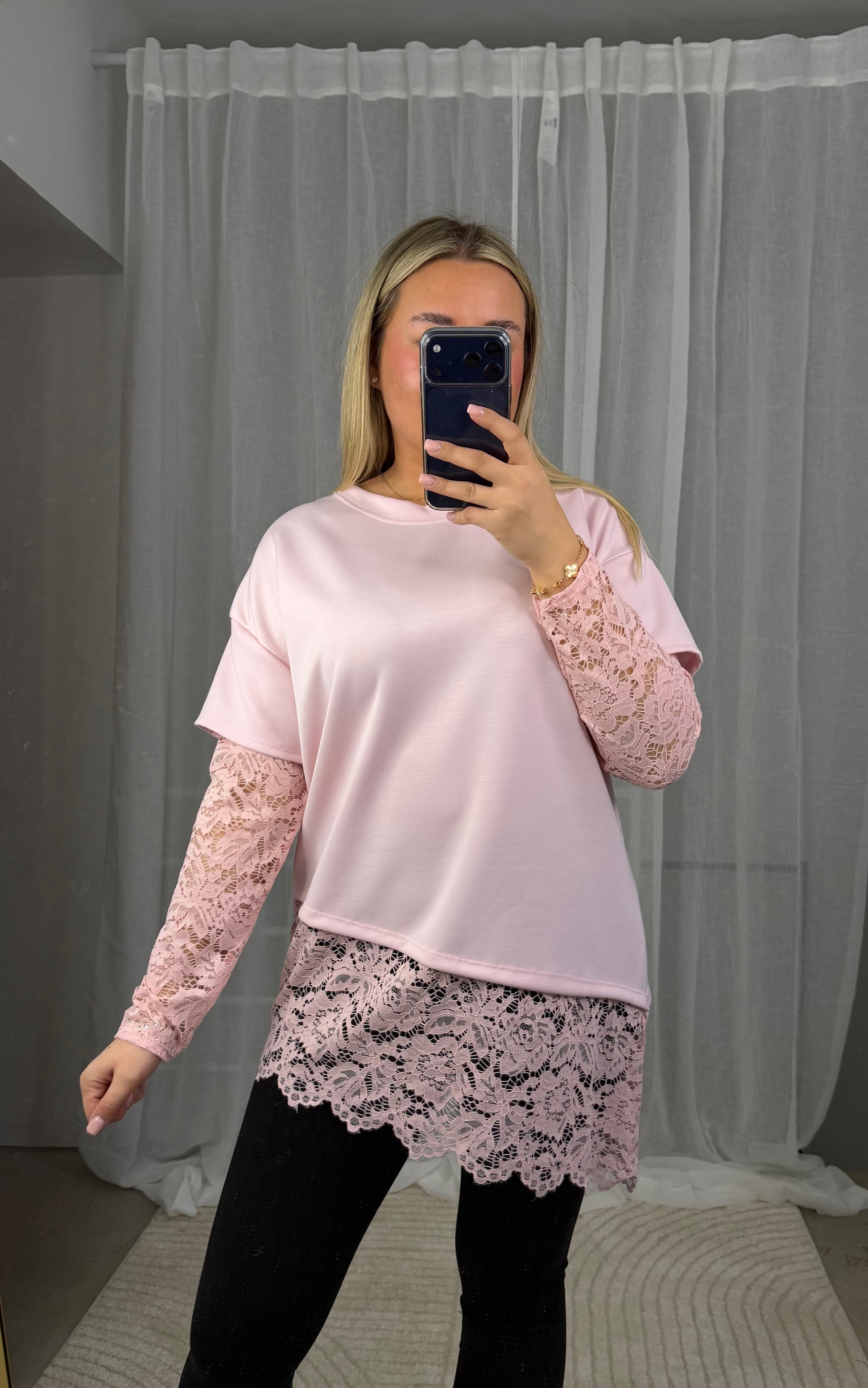Butterstoff Spitzen Pullover in Rosa
